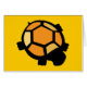 l'avant de la carte est décoré avec un design orangé et noir tortue avec un arrière - plan jaune, à l'intérieur de la carte est vide.