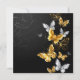 Or, bijoux et papillons blancs sur arrière - plan noir. Papillon doré.
