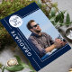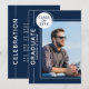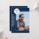 Carte Photo Graduation Party Moderne Script Bleu Blanc