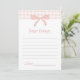 Featuring soft pink gingham and a blush bow, this time capsule note card invites guests to leave heartfelt notes and memories to be opened in the years to come.