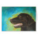 Portrait d'animal de compagnie d'un labrador noir en profil contre un arrière - plan bleu.