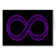 Carte pourpre de symbole d'infini - ou probablement un numéro huit, rien aiment des symboles mathématiques dimensionnellement ambigus. Pourpre et noir lumineux dans des tailles de carte de voeux et de carte de note.