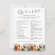 Bien sûr, il n'est pas nécessaire de jouer à la douche nuptiale, mais considérez ceci : vous allez avoir un groupe de tous les âges, et la plupart des invités n'ont probablement jamais rencontré l'un l'autre avant la fête. Mélanger dans quelques-uns de ces jeux de douche nuptiale classiques est une façon parfaite de briser la glace. Nos cartes de jeu double face sont un ajout élégant et pratique à toute douche. Ces cartes professionnelles sont rapidement personnalisables. RÉPONSE CLÉ 1) Quelque chose d'ancien, nouveau, emprunté, et bleu D) Représente le passé de la mariée et l'avenir heureux du couple 2) La mariée porte un voile H) Craignant que les mauvais esprits soient jaloux de son bonheur 3) Portant la mariée au-dessus du seuil I) Protection contre les mauvais esprits à travers la plante de ses pieds. 4) Breaking glass J) Il révèle combien d'années le couple sera marié. 5) Se voir devant le mariage L) Une chance de changer d'avis sur le mariage 6) Jeter la jarre A) Pour distraire la foule 7) Servir un gâteau Mariage B) Les invités mettaient des morceaux sous leur coussin 8) Avoir une fête de mariage G) Pour confondre les prétendants et les méchants 9) Porter une robe blanche E) Indique la richesse 10) Jeter Bouquet K) Pour chasser les mauvais esprits 11) Déterminer le doigt "Anneau" F) Contient la veine qui mène au coeur 12) Le père marchant la mariée dans l'allée C) Transfert de propriété Ajoutez votre libellé personnalisé à ce dessin en utilisant les cases "Modifier ce modèle design" sur le côté droit de l'article, ou cliquez sur le bouton bleu "Customiser" pour arranger le texte, modifier t et couleurs et d'ajouter des informations ou des images supplémentaires à cette conception. Cliquez sur "Customiser plus loin" pour ouvrir les options d'édition complètes. Si vous avez besoin d'éléments de coordination (cartes de remerciements, etc.), veuillez me contacter pour une commande personnalisée. ****Pour les demandes personnalisées avec lesquelles vous avez besoin de mon aide, ne placez pas cette marchandise dans votre panier. Au lieu de cela, envoyez-moi votre demande par courriel à lauralise@iyhtvdesigns.com Un lien vers votre marchandise vous sera envoyé par courriel une fois que l'article sera disponible. Vous pouvez utiliser ce lien pour passer votre commande. Veuillez compter jusqu'à 48 heures.