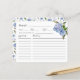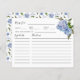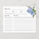 Carte de recette rustique pour votre douche à thème floral nuptiale avec aquarelle illustration de pivoine bleue avec verdure. Demandez à vos invités de remplir cette carte de recettes et de les amener à la nuptiale ou au wedding shower. Parfait pour une douche de printemps ou d'été.
