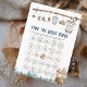 Faites de votre baby shower un moment inoubliable avec ce charmant Reel Fun Trouvez le Baby shower d'invité Bingo, Parfait pour un baby shower rustique, champêtre ou boisé, ce jeu mignon et neutre pour le genre présente un design d'aquarelle délicieux avec des éléments de pêche, des fleurs sauvages, et un motif de linge ludique. Idéal pour célébrer la future mère avec le thème de la pêche, cette carte polyvalente fonctionne merveilleusement pour les baby showers garçons ou les réunions sans sexe. Parfait pour l'artisanat de fête, la papeterie personnalisée ou encore les fêtes d'anniversaire rustiques, ce design mêle éléments floraux boho avec des accents de pêche fantaisie pour créer un souvenir mémorable pour votre journée spéciale.