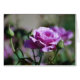 Un beau rose de lavande orne cette carte sur l'avant et un beau rose rouge honore le dos de cette carte.