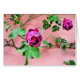 Envoyez vos pensées avec les belles fleurs qui ne se fanent jamais. L'arrière - plan rose augmente ces roses roses foncés magnifiques. Perfectionnez pour des mariages, invitations, douches, fiançailles, merci des cartes et plus. CUSTOMISEZ-LE ! Ajoutez votre propre nom ou texte ou salutation. Timbres assortis disponibles.