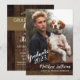 Bois rustique boisé et burlap look unisex de remise de diplômes photo design d'invitation par Holiday Hearts Designs (droits réservés) avec crédit photo modèle à Talen de St. Croix d'Unsplash. Avant présente la photo de vos diplômés en position verticale avec une planche de bois en bas pour l'année de graduation, le nom de l'élève et l'école. Le dos présente les détails de la célébration de remise des diplômes.