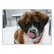 Image amusante d'un Saint Bernard dans la neige léchant son nez. Un cadeau pour réchauffer le coeur de quelqu'un! ! !