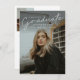 Cette combinaison moderne et élégante d'invitation à la remise de diplômes de photographie élégante comprend une superposition de script et un nom personnalisable, l'école et la photo sur le devant. Le dos offre des fêtes et des détails de l'événement avec 2 photos supplémentaires. Une excellente façon de présenter votre diplômé.