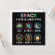 Playful space themed artwork made for curious kids and young students. Cute symbols like UFO, planet, moon, stars, rocket and alien help children explore space science and basic astronomy in a fun and friendly way.