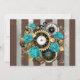 Carte Steampunk Clock and Turquoise Roses on Striped