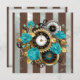 Carte Steampunk Clock and Turquoise Roses on Striped