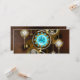 Turquoise lenses with antique watch with brass gears and golden keys on rusty, brown background. Steampunk style.