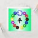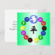 Sur un arrière - plan vert ombragé, symbolisant la tranquillité et la sérénité, nous avons plusieurs des symboles des principales religions du monde - l'hindouisme, le bouddhisme, le taoïsme, le judaïsme, le christianisme et l'islam - dans un cercle avec la branche colombe et olivier de la paix sur tout cela. Nous avons aussi ajouté le symbole chinois pour la Paix au centre dans un noir riche et encre.