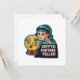 Image caricaturale d'une voyante qui regarde intensément dans une boule de cristal ornée de symboles de crypto-monnaie, son expression est un mélange de concentration et d'amusement alors qu'elle tente de prédire les fluctuations imprévisibles des prix de la crypto-monnaie. Cela saisit avec humour la nature spéculative et imprévisible du marché du crypto.