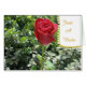 Une photo d'un joli bourgeon rouge a été utilisée pour la photo de couverture. Un bloc en dentelle a été conçu dans le coin supérieur avec les mots "Just A Note". L'intérieur est laissé vide.