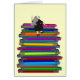 Carte d'art de nonne, grande pile de livres avec une nonne s'élevant jusqu'au dessus. Masquez à l'intérieur, parfait pour n'importe quelle occasion.