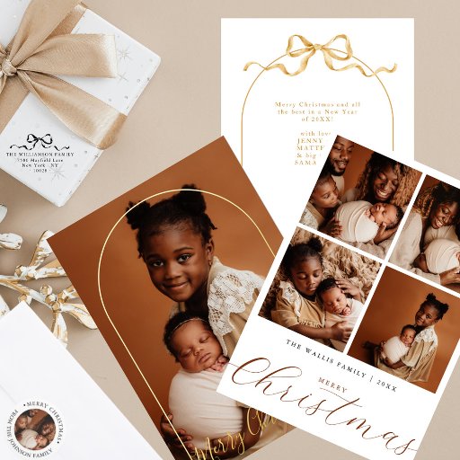 La carte de vacances Baby’s First Christmas, avec son écriture élégante et sa typographie classique, est parfaite pour une famille qui a accueilli un nouveau bébé cette année ! Écrivez le nom de votre bébé dans un script élégant et ajoutez votre photo de famille préférée. Un design élégant et magnifique présente une photo entièrement personnalisable en faux or, cadre neutre couronné d'un ruban arc, qui ressemble à un cadeau de Noël parfait. Le verso comprend des salutations de Noël et un message personnalisé. Appuyez sur le bouton "personnalisation" pour remplacer l'image et entrer vos informations.
