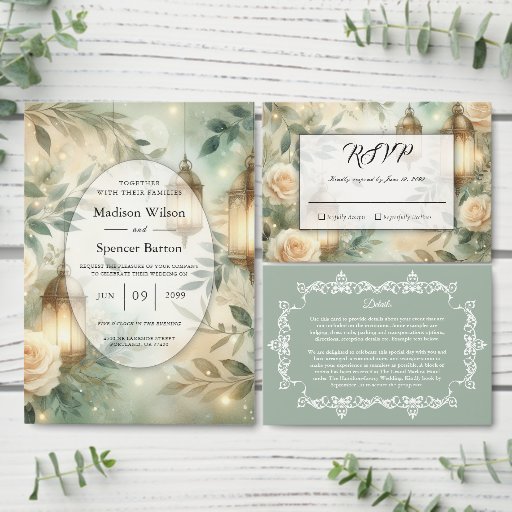 Sage Green and Ivory Rose Lantern Wedding SuiteConçu par Lacey Moyer