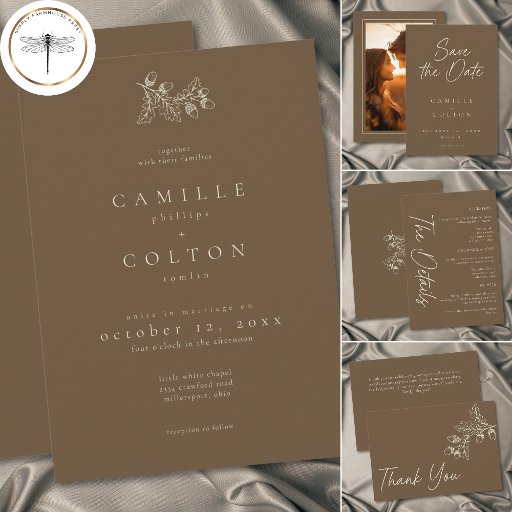 Cocoa Brown Minimalist Leaf Acorn Fall WeddingConçu par Kathe Santillo