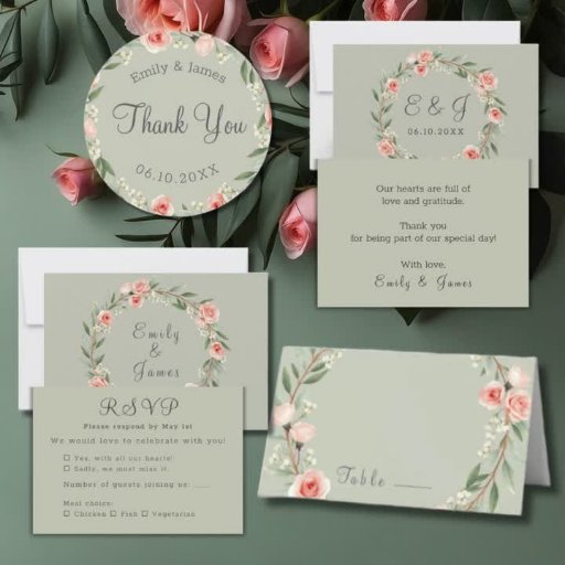 Cartons Réponse Couronne rose verte et romantique