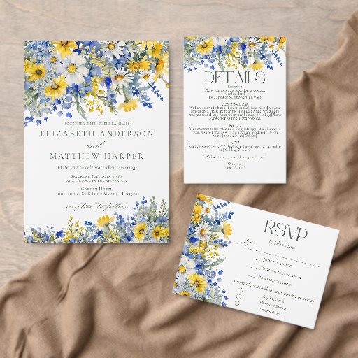 Dusty Blue and Sunny Yellow Wildflowers WeddingConçu par Margarita A