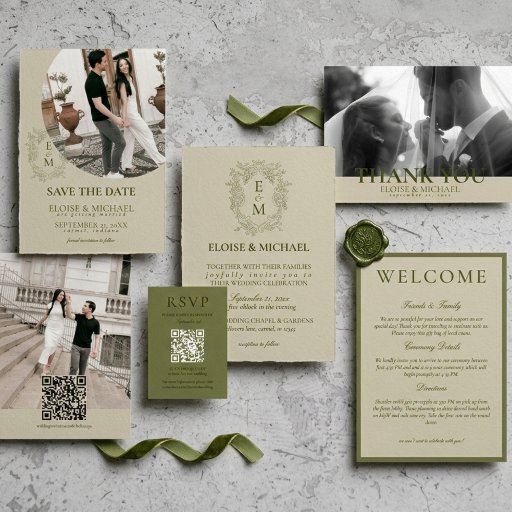 Elegant Sage Green Crest Monogram Wedding Conçu par Molly H