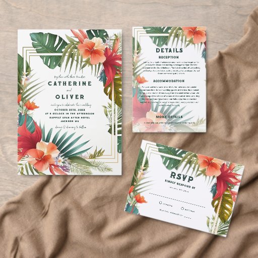 Cartons Réponse Fleurs tropicales aquarelle mariage de destination