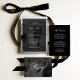 These elegant and modern wedding RSVP response cards feature your own personal photo covering the back of the card completely. A sheer, dark overlay contains formal script calligraphy. The front of the RSVP card is black and white with a classic layout and formal calligraphy. This response card is perfect if you prefer to send a traditional, mail-in version to some or all of your guests.