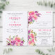Eléments : Boucles d'aquarelle vibrantes accentuées par des polices modernes et amusantes. Comporte les noms des parents et les prénoms et prénoms des couples. Couleurs : Violet, prune, fuchsia, vert, jaune, beurtasse, rougit. Thèmes : Amusant, moderne, capricieux, vibrant, printemps, été, intemporel, romantique, jardin. Collection : Fun Vibrant Violet Fuchsia Floral Mariage Collection Type de produit : RSVP avec choix de menu