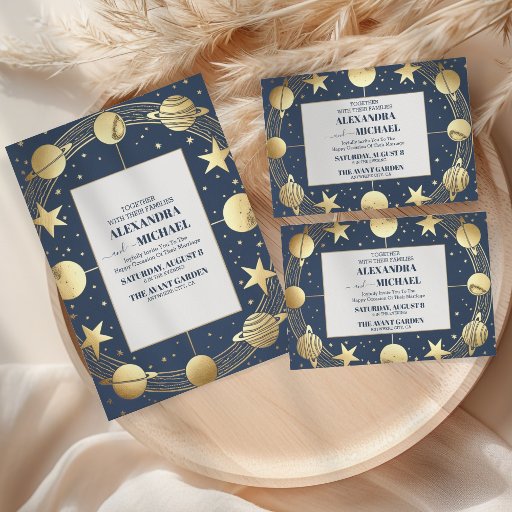 Cartons Réponse Mariage de lune Crescent or de la Marine céleste