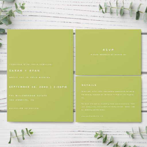 Cartons Réponse Minimalistic Bright Lime Green Wedding