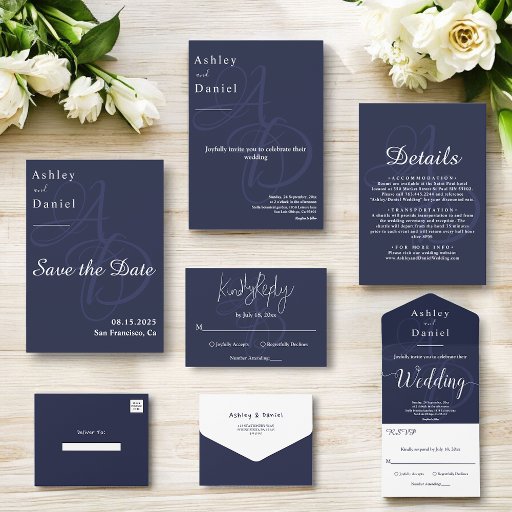 Chic Navy Blue White Monogram Wedding CollectionConçu par Mohamed Sherif