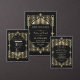 Royal, Romantique, design de carte Vintage avec un Great Gatsby, Roaring 1920's vieux style Art déco Hollywood, fleur de lis en faux or royal, polices vintages; sur le dos magnifique motif Art déco sur le noir. Utilisez l'outil Personnaliser pour ajouter vos informations. Pour plus d'informations, visitez s'il vous plaît, ma Glam Royal Gold Black Collection.