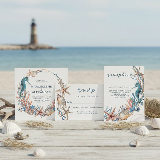 mariagechoix de repasplageaquarellecoque marineétoilenautiquetropicalbord de merdestination