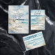 Donnez le ton de votre journée spéciale grâce à cet élégant design mariage de paysage marin peint en aquarelle. Plage de sable blanc et océan aux tons beige, bleu et turquoise, bleu marine. La disposition simple et moderne est parfaitement complétée par des polices calligraphiques lettrées. Idéal pour une plage ou un mariage de destination, ce design allie charme côtier et élégance contemporaine, ce qui donne une première impression parfaite pour votre célébration.