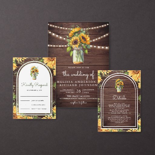 Cartons Réponse Wood Sunflowers Mason Jar Arch Wedding