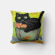 Fun accent throw pillow done in a cartoon style graphics, with a black cat sitting in a flower pot. Great way to add a touch of whimsy and color to your room.