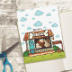 Geniet van dit kleurrijke ontwerp van de foto van je huisdier in een raam van deze schattige cartoon van een dierenwinkel met wolken boven, en een soortgelijke op de rug. Personaliseer met een naam en voeg een foto op voorzijde toe.