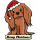 Deze schattige koning van Ruby Cavalier Charles Spaniel kerstversiering shows het speelgoed met een heldere rode kersthoed met een vloeiend witte trim. Het bord onder haar staat: "Vrolijk kerstfeest!" Cute Cavalier King Charles Spaniel Xmas-versieringen voor hondeneigenaars om dit jaar aan hun kerstboom te hangen.