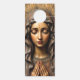 "This striking design presents a portrait of the Virgin Mary as a detailed wood carving or relief sculpture, rendered in rich, warm brown and reddish-brown tones. She is depicted with a tranquil, contemplative expression, hands clasped in prayer, and is framed by a rustic, textured halo. The rough, earthy texture of the wood grain provides a powerful sense of ancient, grounded spirituality. This design is highly suitable for products with a rustic, spiritual, or devotional theme. Imagine it on wooden plaques, religious art prints, handcrafted items, or home decor that evokes a traditional, artisan aesthetic."