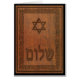 Hij is voorzien van een computergemaakt "houtbedekking" van een Magen David (Ster of David), tekst die "Shalom" leest en een bloemige rand.