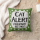 Een oneerbiedig en schattig typografisch dierenontwerp met de tekst "Cat Alert, Prepare To Pet". Het beschikt over zwarte en rode tekst op een witte rechthoek met funky, speelse witte stippen eromheen, allemaal op een grijze achtergrond.
