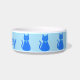Deze geweldige kattenkom heeft een digitaal afbeelding van een schattige blauwe kat met een krullende staart. Zijn ogen zijn bleek blauw met zwarte pupillen. Hij draagt een roze boog in zijn haar en een lichtblauwe kraag om zijn nek met een blauwe token erop. Er is douanetekst zodat kunt u de naam van de kat omvatten.