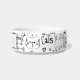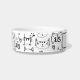 Kute, handgetekende doedels patroon van grappige katten, en tekst zoals "Katten" en "Mauw" in kleine, gekke zwarte tekeningen op een witte achtergrond. Het grappige kat patroon op deze schattige voedselkom is leuk voor kattenliefhebbers en handig voor hun katten. Er is ruimte voor de naam van de kat.