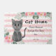Een grappige kat citeert om iedereen in je huis te verwelkomen. Achtergrond heeft pastelroze en witte strepen, delicate bloemen en een gouden glitter.
