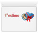 "T'estimo" - "Ik hou van je" in het Catalaans. Geef deze mooie kaart op Valentijnsdag of wanneer je je liefde wilt uitdrukken. Kleine harten op snaren liggen op een betonnen plek in de ochtendzon, die lange schaduwen giet.