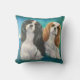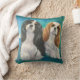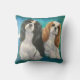 Dit is een 16x16-werpkussen met een foto van een origineel schilderij van twee Cavalier King Charles Spaniels, een Tri-Color, en het andere Blenheim, samen met een blauwe/groene achtergrond.