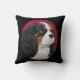 Dit is een vierkant, zwart kussen met een originele, ovale foto van een prachtige driekleurige Cavalier King Charles Spaniel